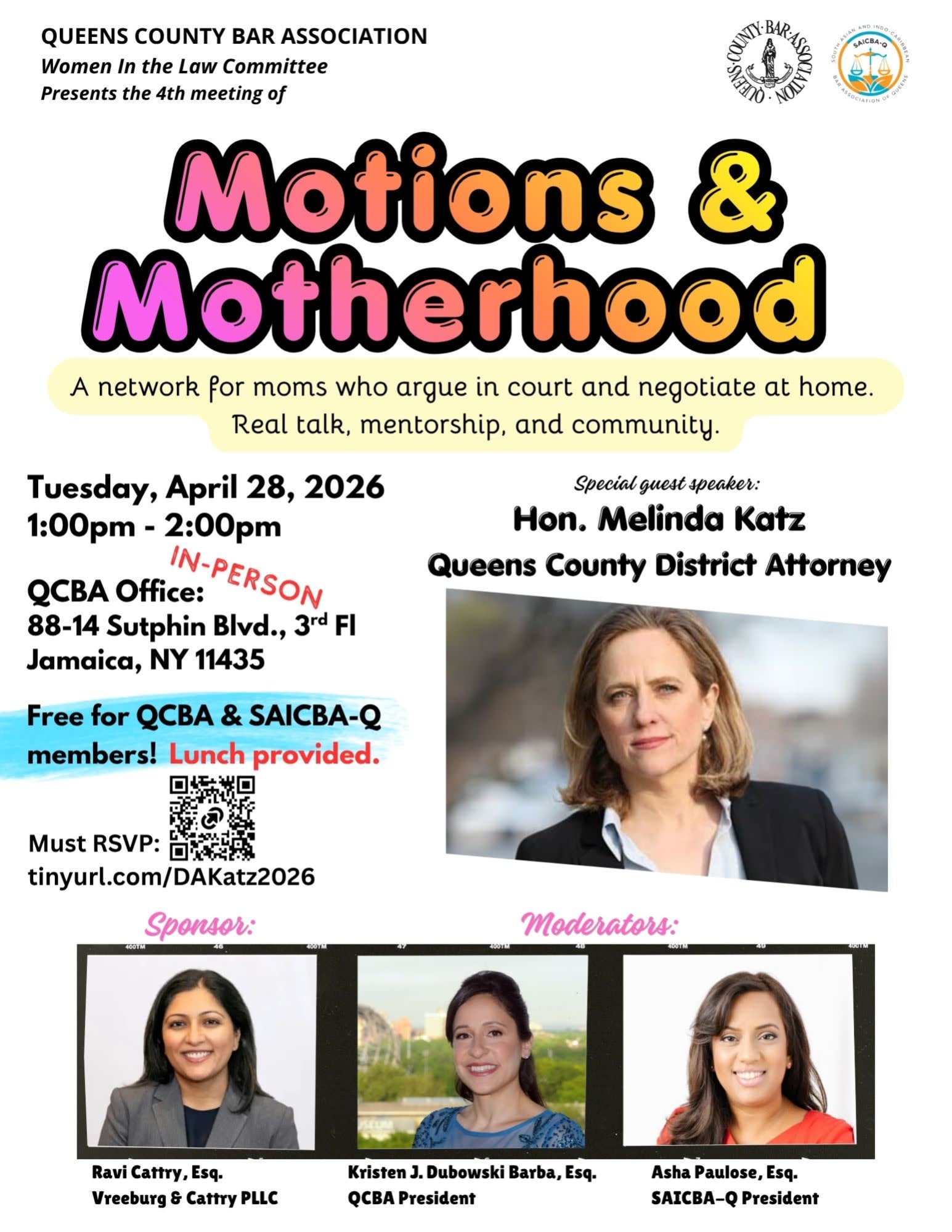 URL:https://queenscountybarassociation.growthzoneapp.com/qcba-events-and-education-calendar/Details/motions-and-motherhood-4-da-melinda-katz-4-28-2026-1692680?sourceTypeId=Hub